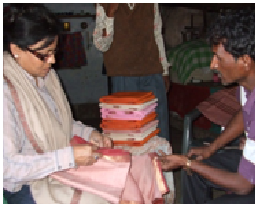 Handloom Textiles : In Recent years, weavers from regions of Madhya Pradesh where the market for certain kind of fabrics was dithering due to changing market requirements, are being given marketable Designs by Chavi. Encouraging the new generation to take up the skill and produce for the changing tastes, keeping the authenticity of the rich local and age old styles, along with developing new designs in the same style. Fashion shows are organised for marketing the fabrics, Saris and Garments.